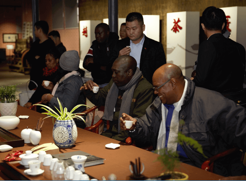 10月27日下午,苏里南共和国地区发展部部长、驻华大使、参赞、帕拉马里博市长、帕拉市市长等一行人走进湖北省赵李桥茶厂进行茶文化交流。