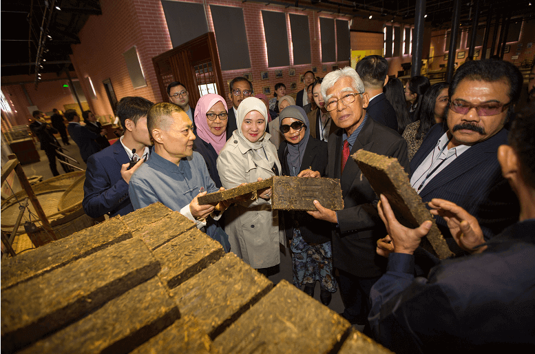 大会期间,来自苏里南共和国、马来西亚、美国、匈牙利、哈萨克斯坦的多个代表团到访赵李桥茶厂进行友好交流。各代表团参观了赵李桥茶厂,对赵李桥砖茶制作技艺做了详细了解,并对赵李桥茶厂发展及青(米)砖茶出口做了深入交流。