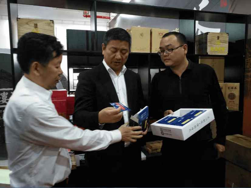 赤壁市委常委、常务副市长洪金虎(左二)深入了解具有辅助降血脂功效的“川”牌保健茶。