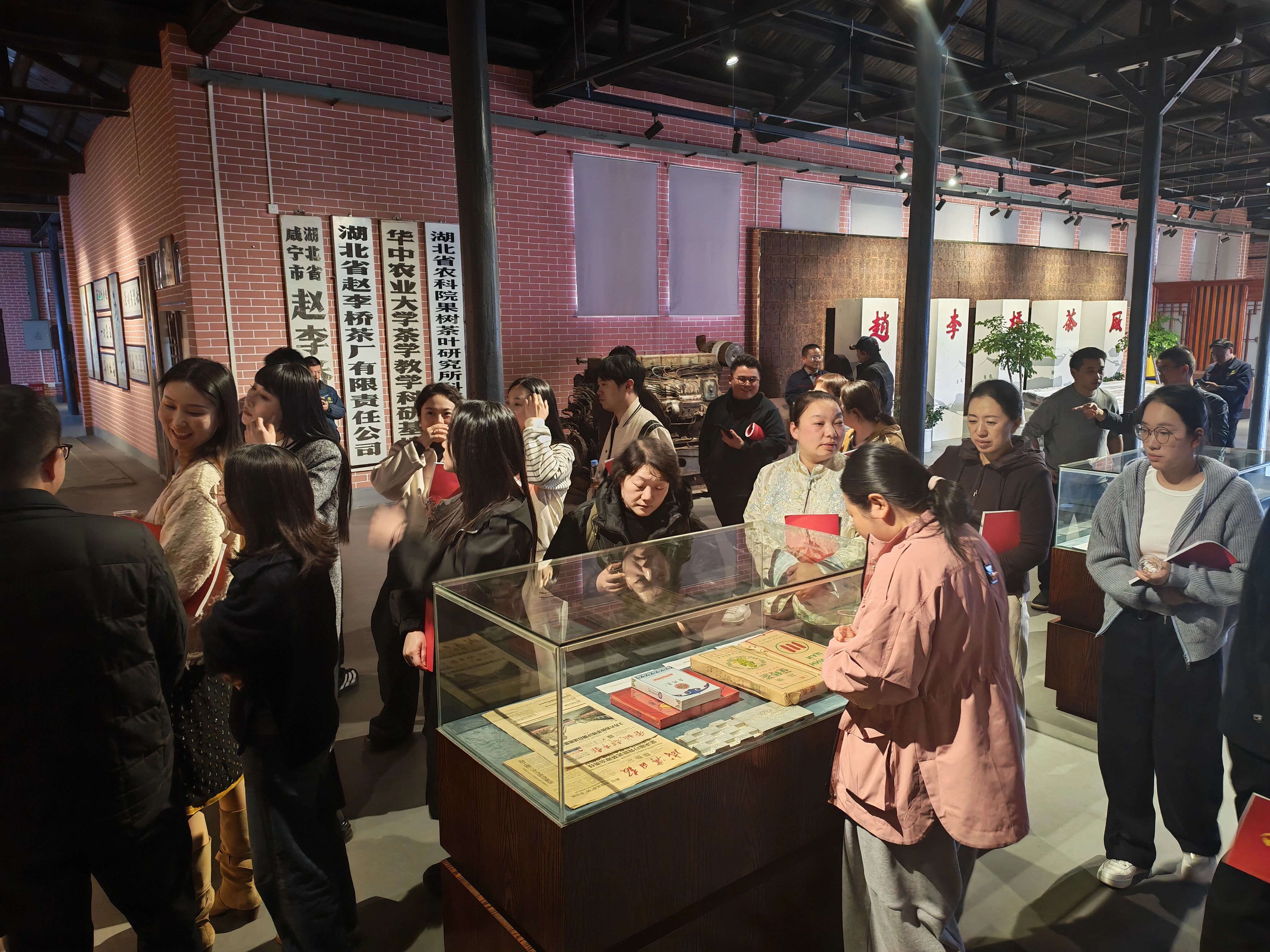 赵李桥茶厂作为百年中华老字号、国家级非物质文化遗产保护单位,以高质量党建引领企业发展,打造了“百年传承” “辉煌100”等特色党建品牌,将党的组织优势转化为非遗保护与产业升级的强大动力。在茶厂的精心安排下,学院党员们参观了川字茶博物馆,馆内的制茶老工具、泛黄老照片与珍贵文献,生动展现赤壁青砖茶从唐至明清的发展脉络,以及作为万里茶道核心商品连接中外的辉煌历程。