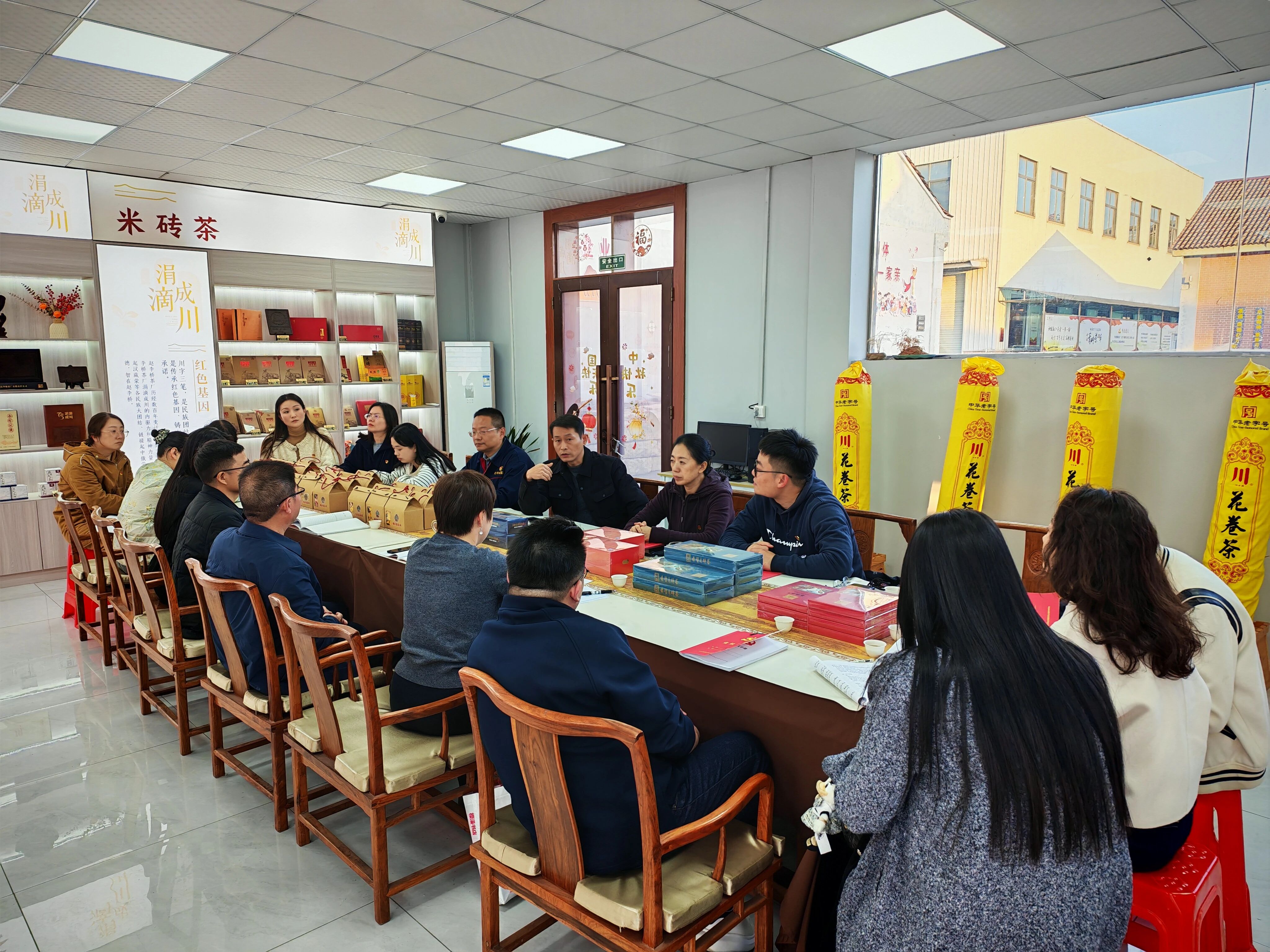 在川字茶博物馆馆长的细致讲解中,党员们深入了解了“川” 字牌青砖茶制作技艺的匠心传承与现代革新,深刻体会到传统工艺与艺术设计的天然契合点。双方围绕 “党建 + 非遗”“党建 + 美育”“党建 + 产教融合” 展开交流,探讨如何以艺术赋能茶文化创新,让非遗技艺在当代焕发新活力。
