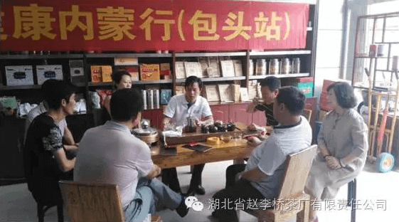 把自己的青春献给了川字青砖茶的包头公司经理赵敏(左五)与茶业爱好者合影