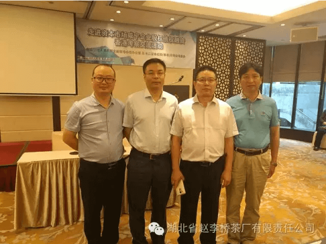 2016年8月10日,在咸宁市何志雄副市长带领下,由咸宁市人民政府金融领导小组办公室及长江证券控股(香港)有限公司联合主办的主题为“走进资本市场咸宁企业股权债权融资香港考察交流活动”在香港顺利进行。中华老字号企业湖北省赵李桥茶厂有限责任公司总经理王冬阳荣誉随团考察。