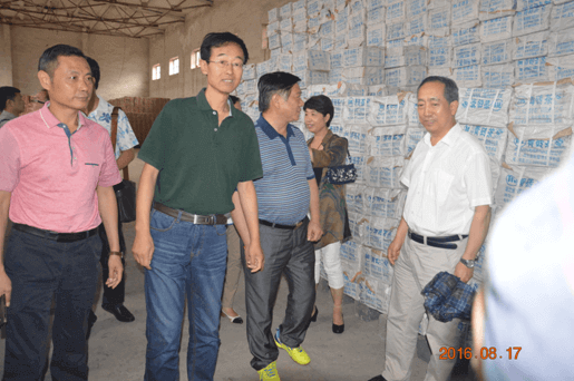 (左二为内蒙古绿泰源农产品开发股份有限公司后勤总负责人史良福,正在向调研组介绍内蒙青砖茶的储备情况,左三湖北省农业厅副巡视员杨孔平,左一为湖北省茶叶协会宗庆波)