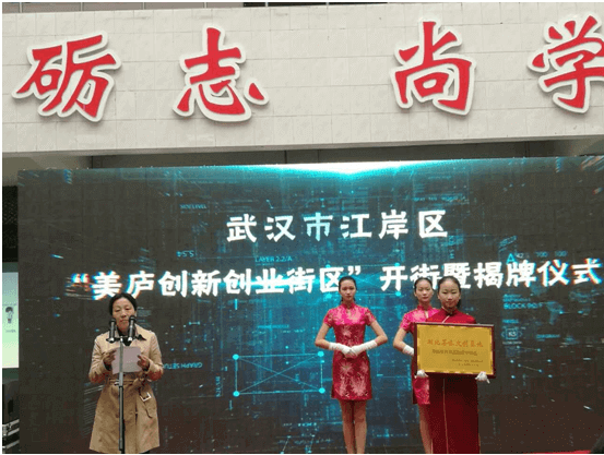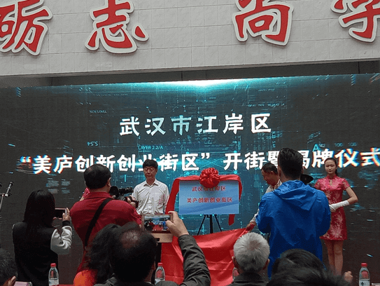 开园暨揭牌仪式由武汉市财贸学校党委书记黄勇主持,后湖街工委颜松毅书记致欢迎词并介绍了美庐创新创业街区基本情况,江岸区人民政府叶晓飞副区长代表政府对美庐创新创业街区开街表示祝贺,对大家发扬“聚力改革创新、奋力拼搏赶超”的精神,建设以步行休闲和创新创业为特色的“美庐创新创业街区”,积极促进街区人居环境和生活品位的整体提升,全面推进“创新活力街区,幸福美丽江岸”建设和财贸学校学校长期以来高度重视学生创新创业工作给予充分肯定,并向参与及关注支持创新创业园建设的所有人员、企业和职能部门,致以最崇高的敬意!向首批来街区创业的大中专学生表示热烈的祝贺!