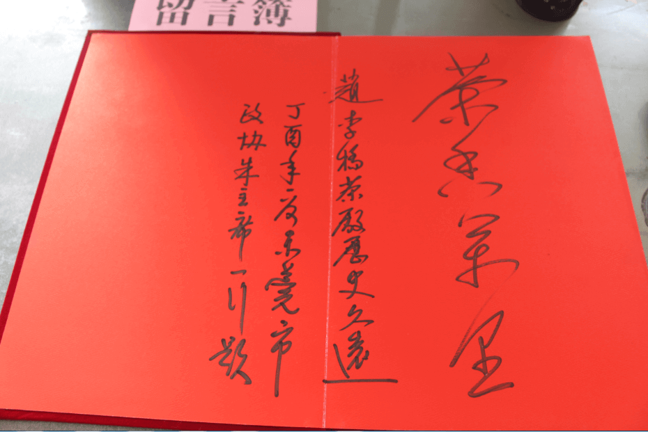 (在传习所内,东莞市政协原副主席朱伍坤题词留念)
