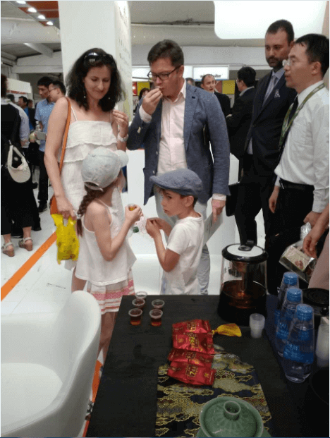 8月26日,博览会刚一开始,我公司展示区前人潮涌动,热闹非凡,参观了解川字牌青砖茶的人络绎不绝。更为荣幸的是,公司展台前还迎来了斯洛文尼亚总统博鲁特·帕霍尔、副总理兼农业部部长戴扬·日丹、中国农业部部长韩长赋一行,并对公司产品给予好评。