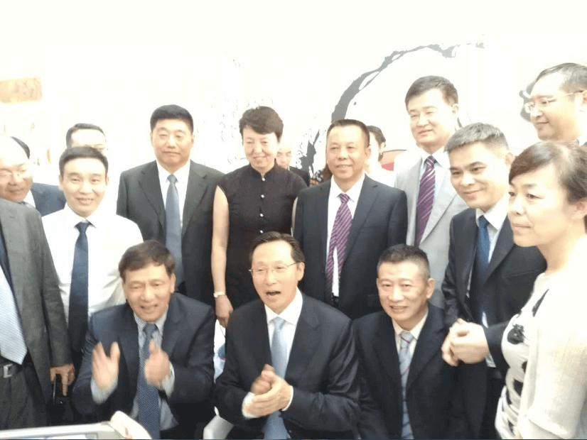 中国农业部部长韩长赋(一排中)与参展企业代表合影