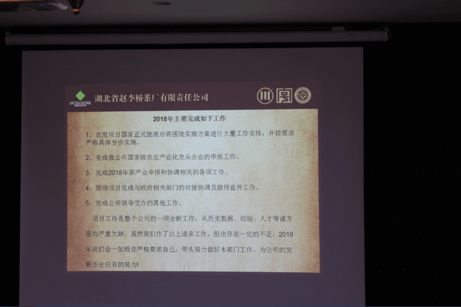 2017年,公司在各级政府部门及省农资控股集团、省茶业集团领导的关怀指导下,取得了可喜成绩。2018年,将以全新面貌起航,继续发扬茶厂优良传统工艺,并引进高新科技技术,坚定信心,夯实企业在湖北青砖茶企业的龙头及行业标杆作用。2018年让川字茶飘香全世界。