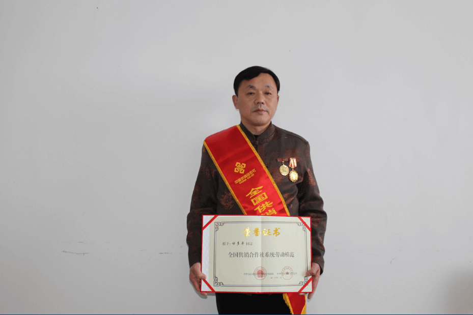 (甘多平获得全国供销合作社系统劳动模范奖状)