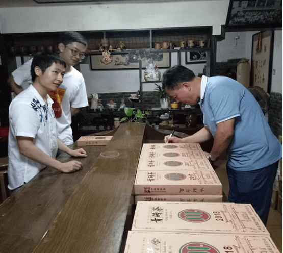 甘多平为川字茶粉丝们签售青砖茶、米砖茶新品