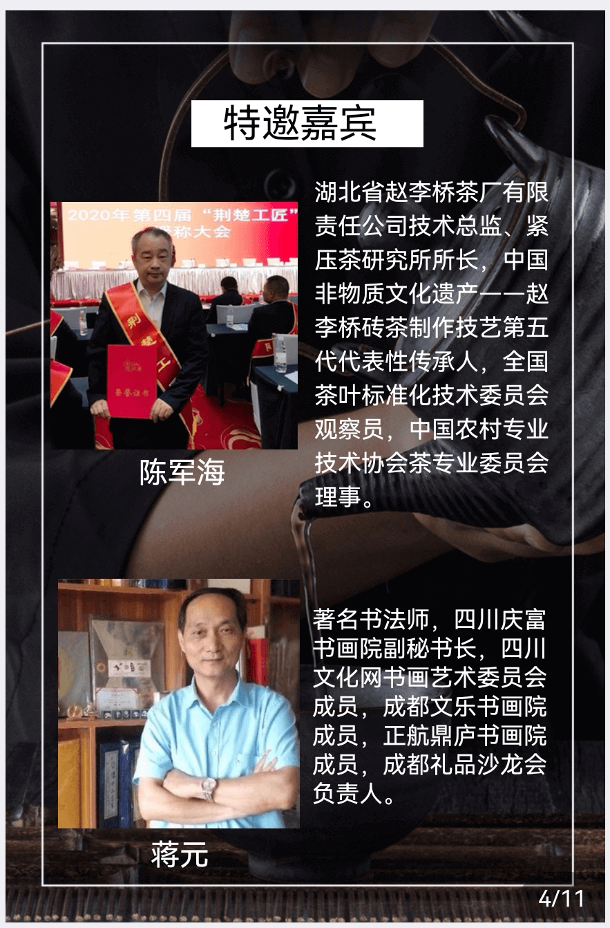 赵李桥茶厂副总经理、技术总监、国家级非物质文化遗产赵李桥砖茶制作技艺第五代代表性传承人陈军海亲临现场为嘉宾分享和推广多款赵李桥茶厂主推茶产品。