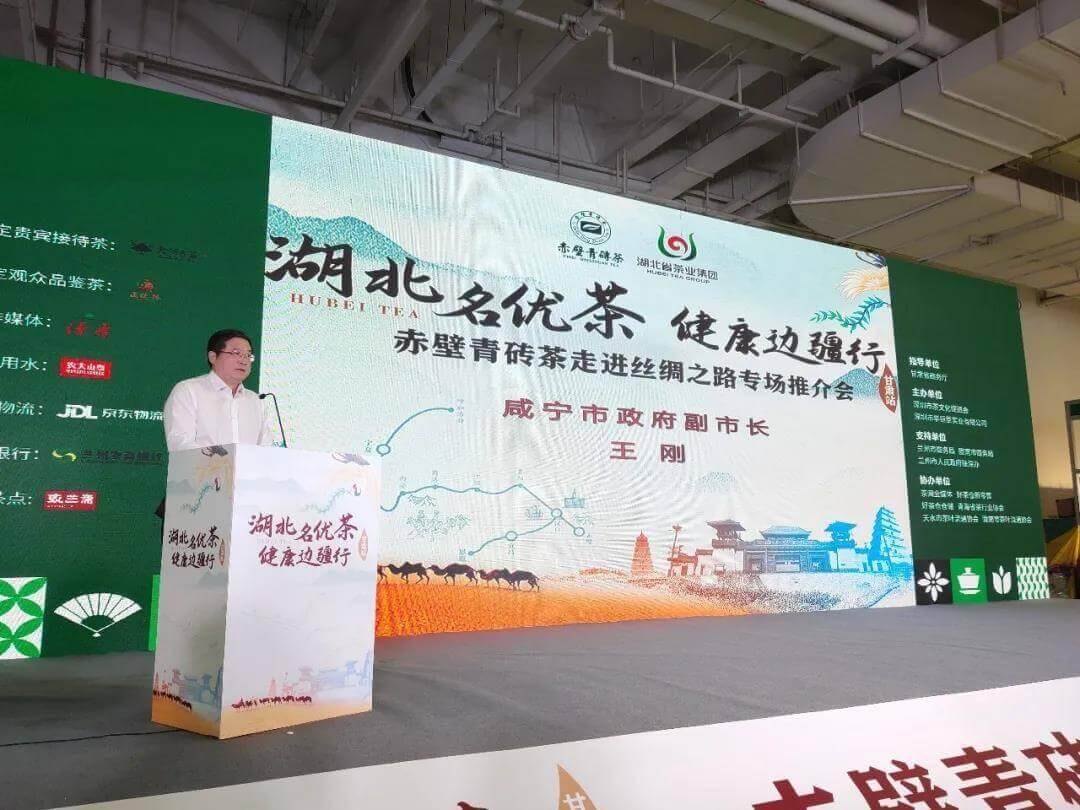 接下来咸宁市人民政府副市长王刚为咸宁和赤壁两市做了重要推介,并诚挚邀请甘肃省的茶人、茶企、茶友到咸宁参观考察,品尝赤壁青砖茶。