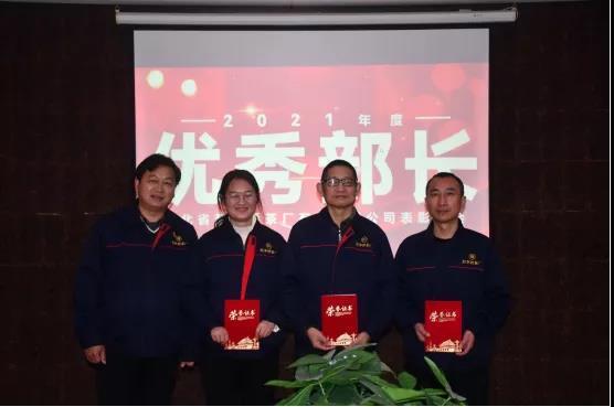 表彰会上,公司对评选出的2021年度优秀员工24名、优秀部长3名、优秀部门3个进行了表彰。公司高层为获得奖项的员工和部门颁奖。