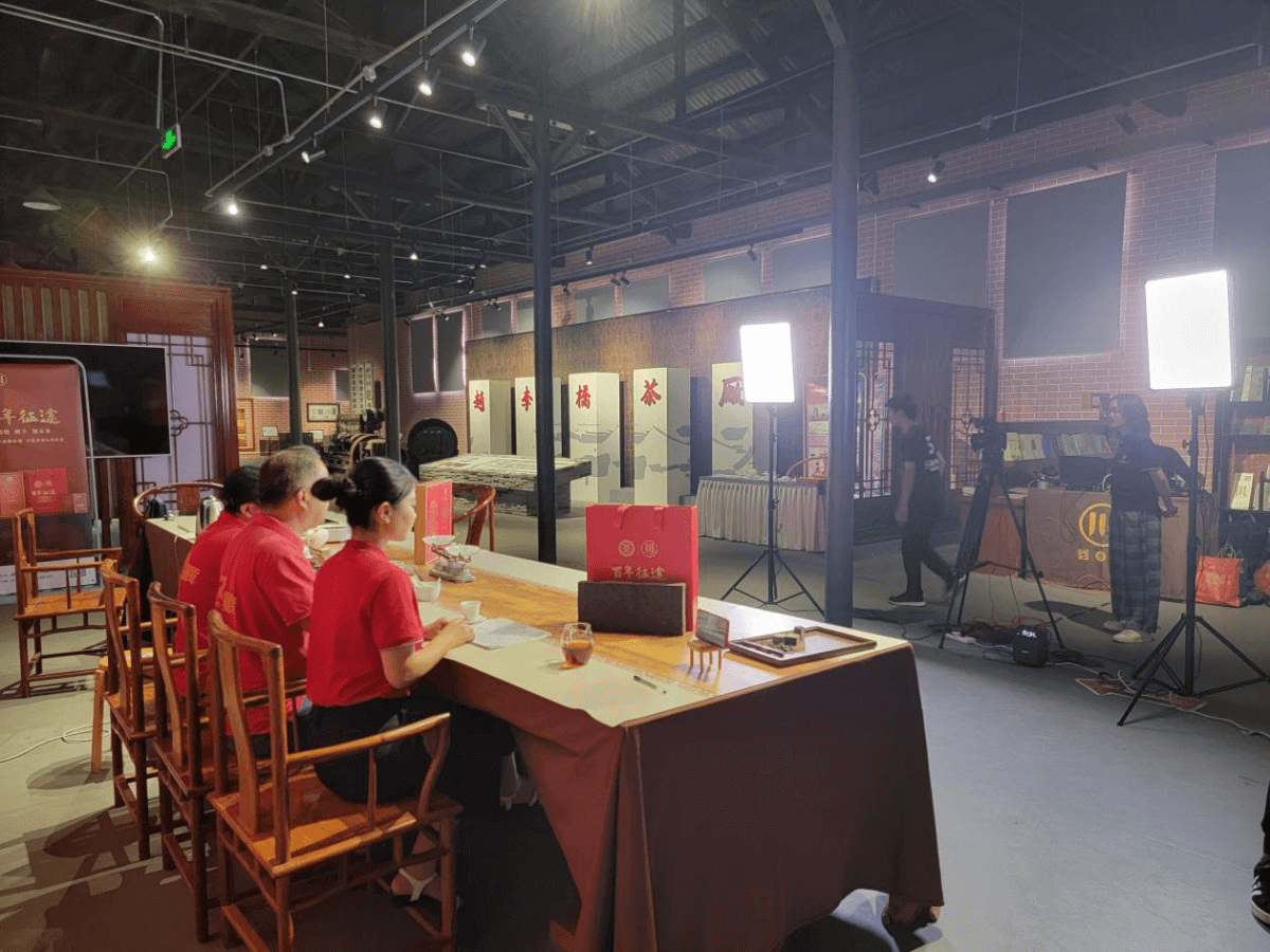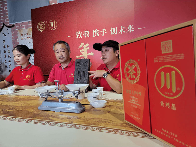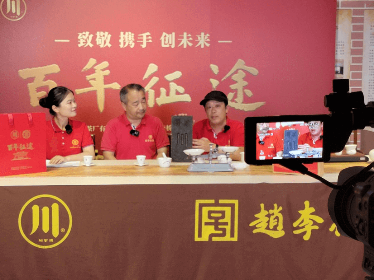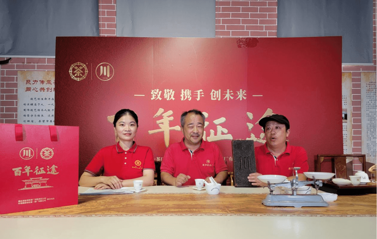 经典好茶源于匠心品质的甄选及百年精湛工艺的传承,在湖北省赵李桥茶厂有限责任公司主会场,中国非物质文化遗产—赵李桥砖茶制作技艺第五代代表性传承人陈军海,张魁老师通过线上直播平台向广大茶文化爱好者讲述“百年征途”新品的研发历程及品质特征,并实时与观众互动,为爱茶人推介好茶品!