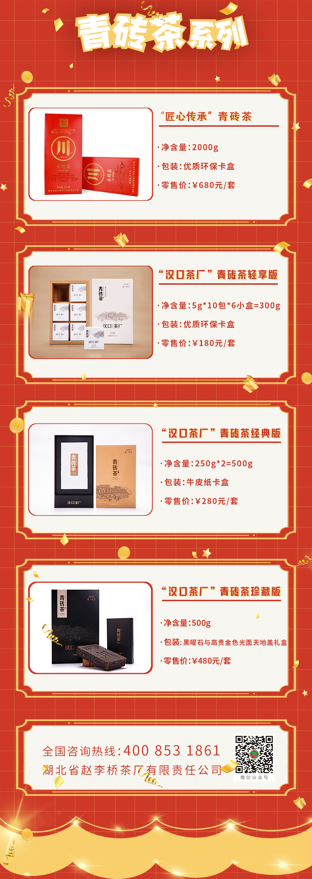 地址:湖北省赤壁市赵李桥镇前进街25号 行政电话:0715—5866107 销售部电话:0715-5866109 传真:0715-5867215 版权所有:湖北省赵李桥茶厂有限责任公司(www.brick-tea.com) 鄂ICP备05010717号