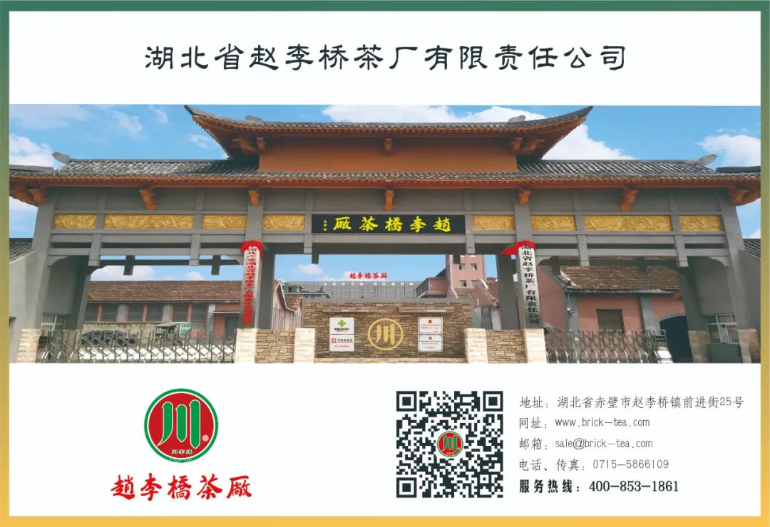 湖北省赵李桥茶厂有限责任公司为湖北省供销总社所属企业,现由湖北省茶业集团控股。公司砖茶生产历史悠久,是拥有“中华老字号”和“中国驰名商标”的省级农业产业化龙头企业;是“青砖茶”、“米砖茶”国家标准(GB)起草单位;历史上闻名遐迩的“川”字茶的传承者;是国家级非物质文化遗产代表性项目——赵李桥砖茶制作技艺成功入选联合国教科文组织人类非物质文化遗产代表作名录。三次获得“全国民族团结进步模范单位”;2020年厂区内的砖茶制作生产线被列为“国家级工业遗产”。