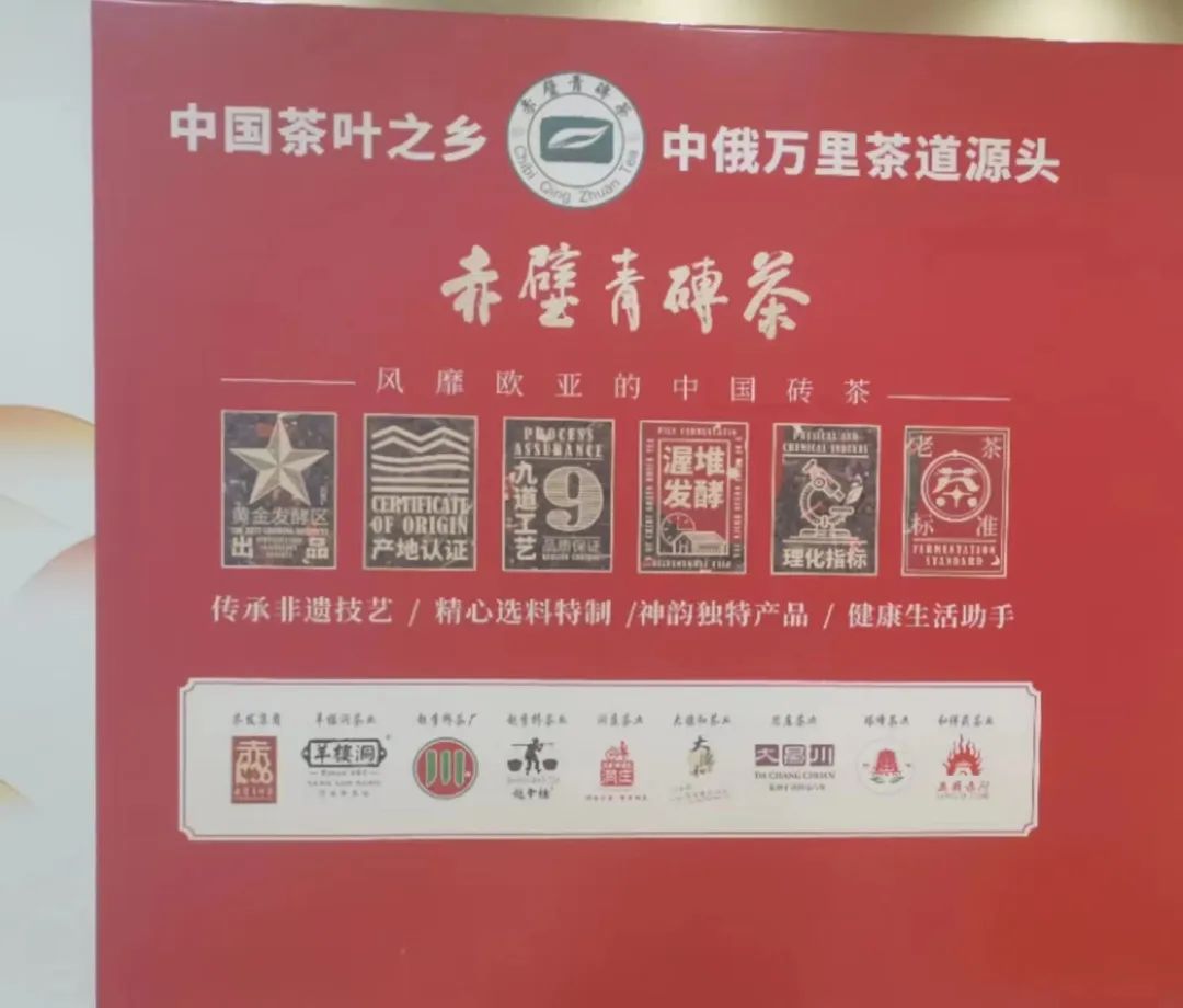 来自湖北的11家赤壁青砖茶生产企业、,在现场进行了展示展销,湖北省赵李桥茶厂有限责任公司携川字牌,火车头牌等等亮相活动现场。