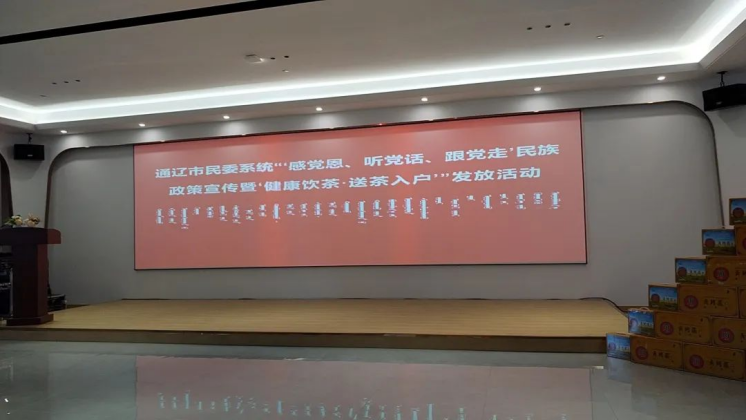 4月17日,内蒙古自治区通辽市民委系统“‘感党恩、听党话、跟党走’民族政策宣传暨‘健康饮茶·送茶入户’”发放活动在开鲁县举办。通辽市委统战部副部长、民委主任梁铁宝,开鲁县政府副县长张辉,通辽市民委、各旗县市区民委及开发区民族宗教事务局,通辽市茗莉茶叶有限责任公司等单位负责同志以及困难群众代表共计70余人参加活动。