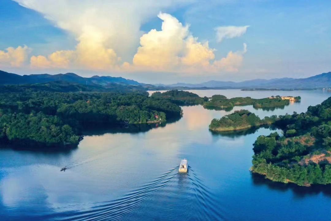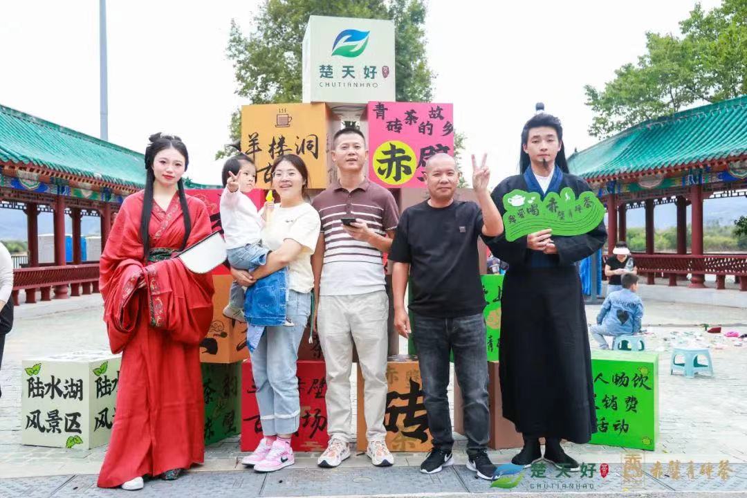 陆水湖风景区,湖水波光粼粼,青山环绕,如诗如画的美景中弥漫着别样的热闹气息。赵李桥茶厂的展位前更是热闹非凡,游客被其独特的茶品所吸引,纷纷驻足。