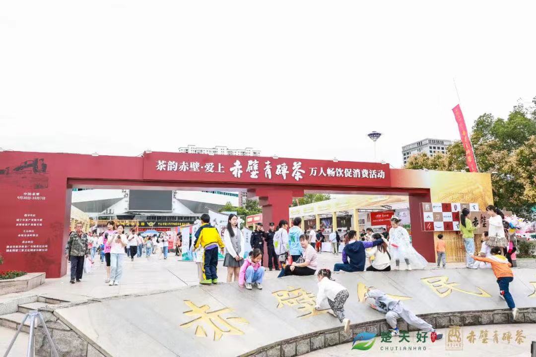 赤壁市人民广场人群熙熙攘攘,热闹非凡。一场关于赤壁青砖茶的欢乐盛宴正在这里热烈上演。