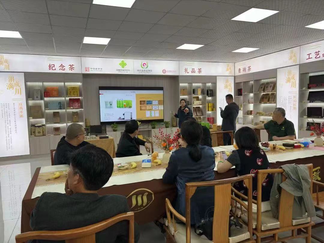在互动交流与探讨研发方向环节,茶厂总经理金传炎、研发总监及传承人陈军海、销售总监罗进启与经销商们围绕产品、品牌、研发畅所欲言。经销商们分享销售经验与市场痛点,为茶厂发展提供宝贵建议,共同为青砖茶的未来出谋划策。