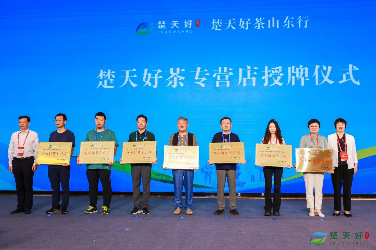 现场举行“楚天好茶专营店”授牌仪式环节,助力楚天好茶扎根山东市场,为山东消费者提供更便捷的正宗湖北好茶购买渠道。首批15家山东经销商正式挂牌“楚天好茶专营店”。湖北省茶业集团合作的4家经销商门店获得授牌。