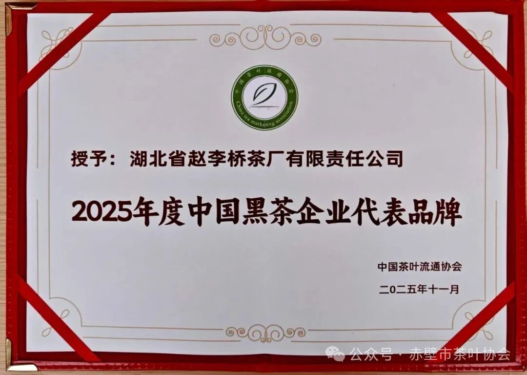 喜讯 ▏赵李桥茶厂“川”字牌青砖茶获评“2025中国黑茶企业代表品牌”!
