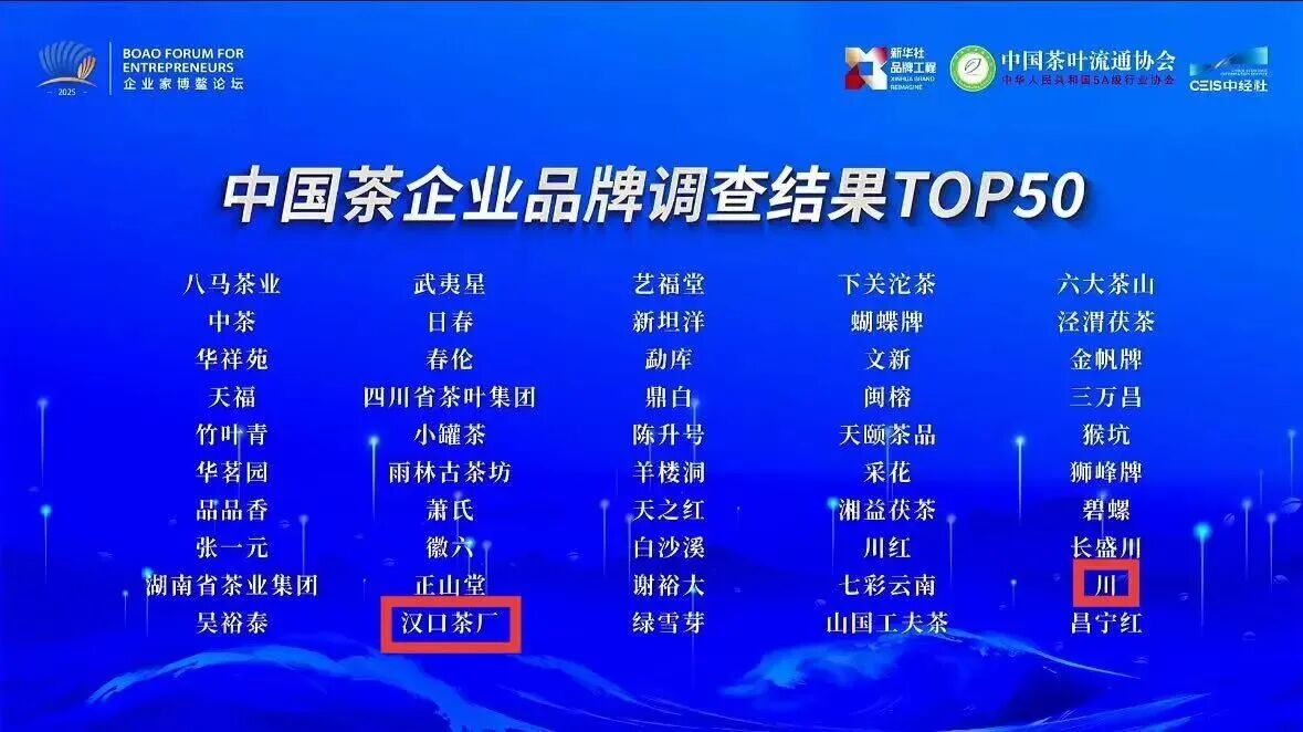 11月27日,由新华社品牌工作办公室、中国经济信息社与中国茶叶流通协会联合主办的2025中国茶品牌建设论坛在浙江新昌隆重召开。论坛上,备受行业关注的“2025中国茶品牌(区域公用品牌、企业品牌)TOP50”系列调查成果正式发布,湖北省赵李桥茶厂有限责任公司凭借深厚的品牌积淀与卓越的发展实力,成功跻身企业品牌TOP50行列,与全国茶界标杆企业同台,共同彰显中国茶品牌的蓬勃活力。