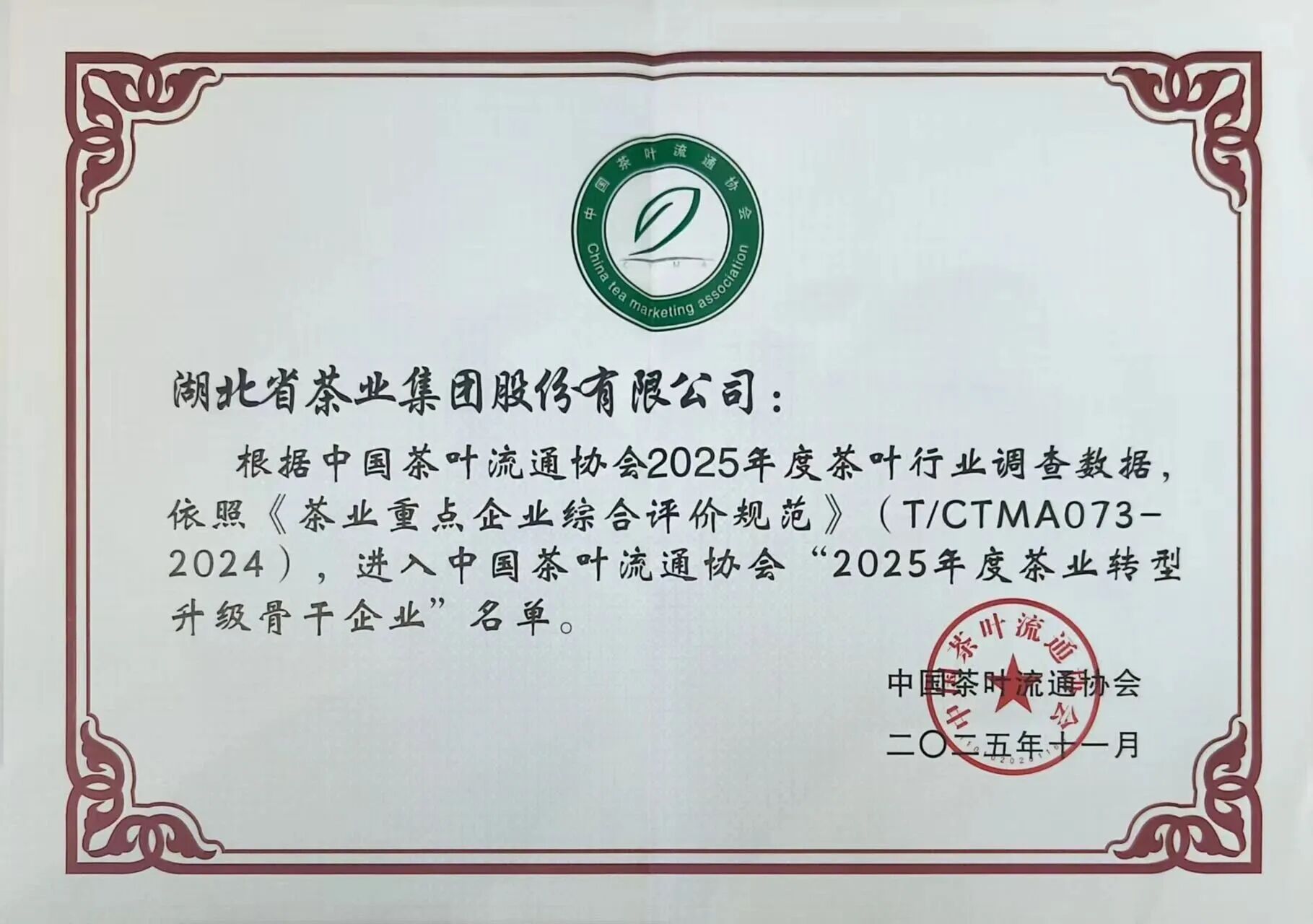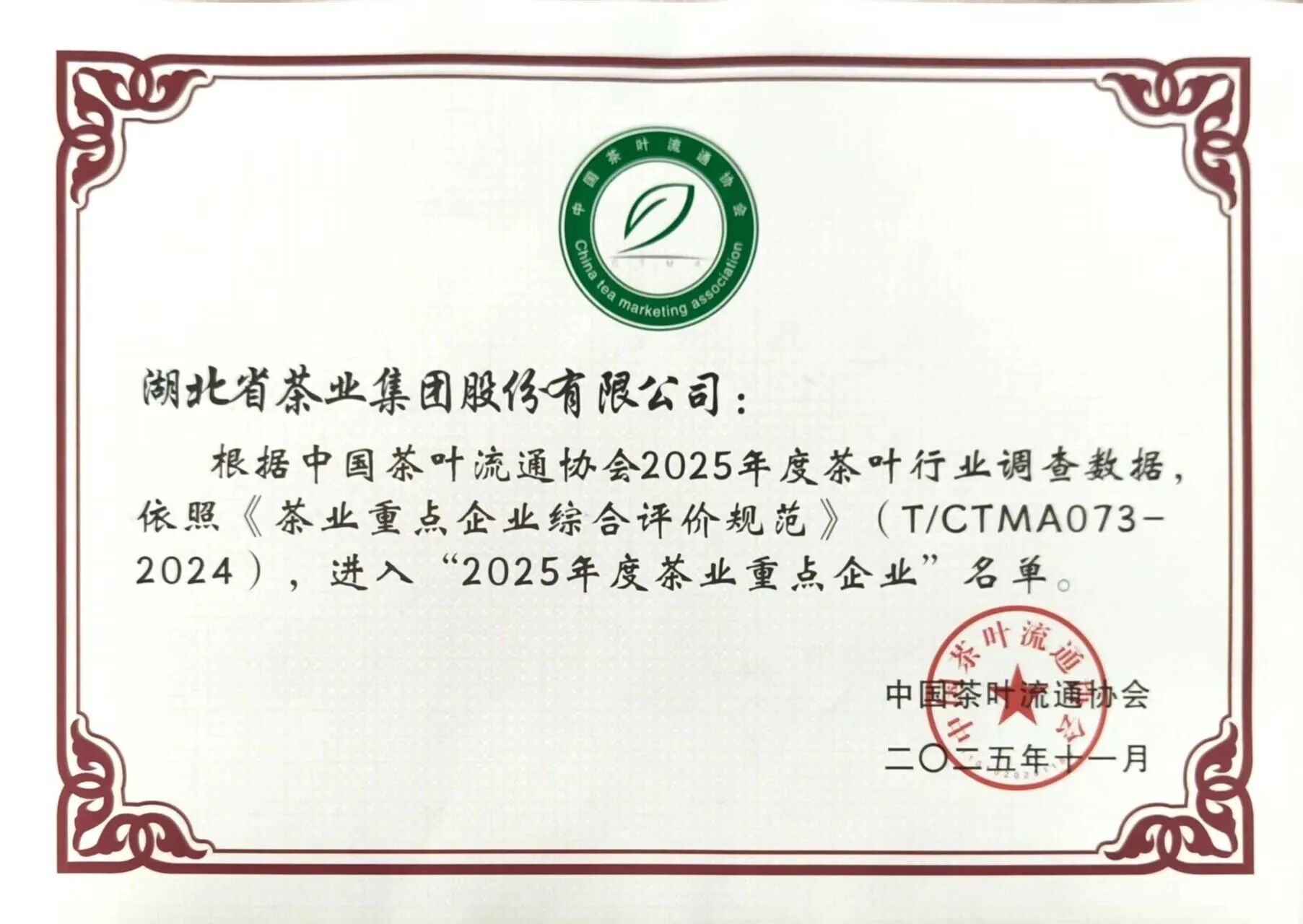 值得一提的是,湖北省赵李桥茶厂有限责任公司为湖北省供销合作总社所属企业,现由湖北省茶业集团控股。此次评选中,湖北省茶业集团及旗下汉口茶厂亦成功跻身企业品牌 TOP50 行列。与此同时,湖北省茶业集团持续稳居年度茶叶重点(原百强)企业前20名,并荣获中国茶叶流通协会授予的 “2025 年度茶业转型升级骨干企业” 称号。这些荣誉的斩获,是行业对集团在茶产业转型升级、科技创新及品牌建设等领域所获成效的高度认可。