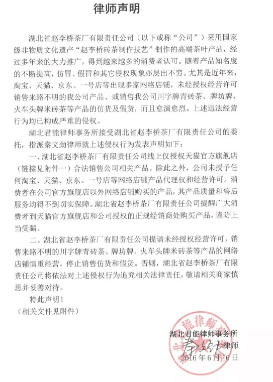 2016-08-05 湖北省赵李桥茶厂有限责任公司