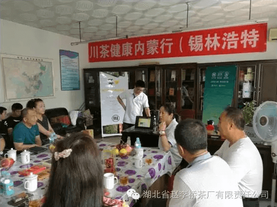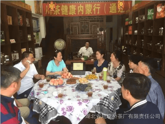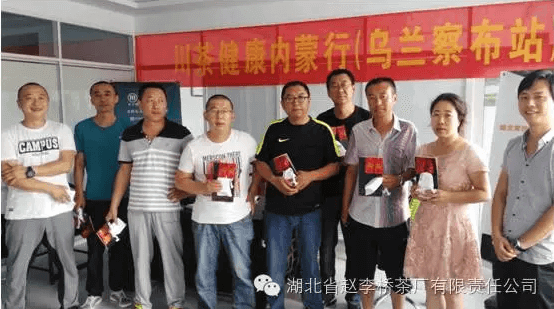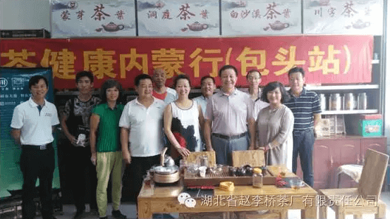 把自己的青春献给了川字青砖茶的包头公司经理赵敏(左五)与茶业爱好者合影